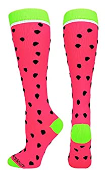 【中古】【輸入品・未使用】(Small, Neon Pink/Neon Green) - MadSportsStuff Neon Watermelon Athletic Over The Calf Socks