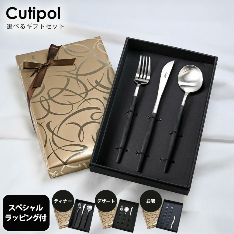 エントリー買いまわり最大19倍!クチポール ギフトセット Cutipol GOA ゴア ブラック×シルバー 純正ギフトBOX付 3点セット 3本セット ディナー デザート ナイフ フォーク スプーン 箸 2膳セット 洋食器 スペシャルラッピング スパイラルゴールド付き