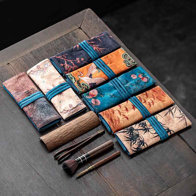 茶道具 収納袋 茶道六君子用 携帯 旅行 持ち運び便利 厚手 丈夫な布製 巾着ポーチ 禅風 和モダン 上品な和柄 茶器 茶則 茶針 茶挟 小物入れ