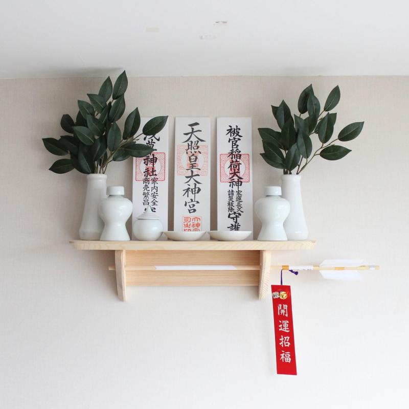 神棚 御札立て 壁掛け モダン 45x12x12cm 壁掛け用神札立(神棚)神棚 祖霊舎 一社 三社 神道 祭事 神様 神札 便利グッズ, KTJP-KAMI45x12x12神棚 御札立て 壁掛け寸法: 高さ12cm×幅11cm×奥行約12cm 材質:天然木。場所をとらず、お札やお守りをお部屋にお祀りする事ができます。一般的なサイズのお札(30センチ程度)であれば厚さ2センチまで安定して自立します。商品内容: 神札立て・壁掛け金具。壁掛け専用金具が付属しており ネジがいらず取り付け簡単。天然木のため一つ一つ柾目や色が異なるのでご了承願います