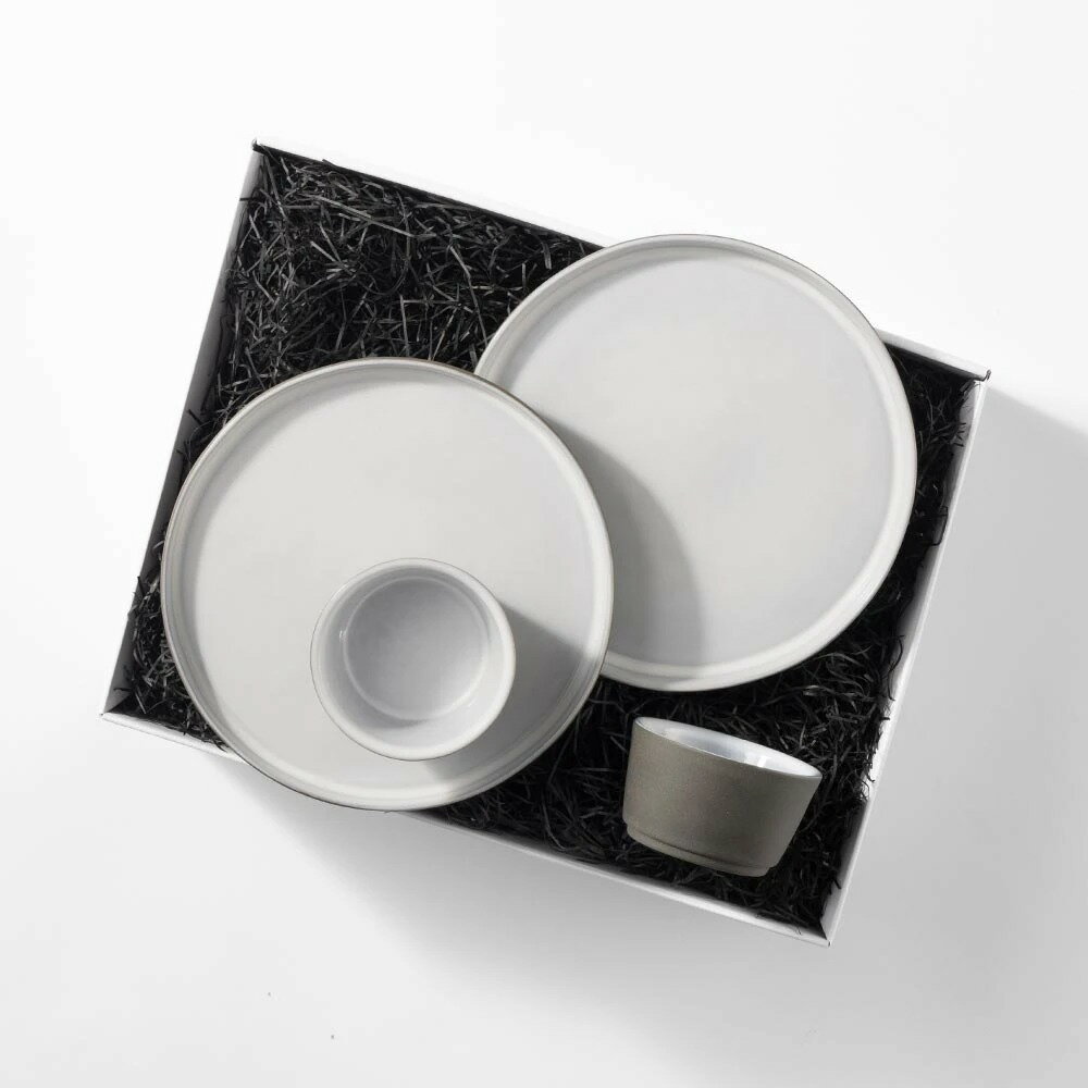 内容・ラゴア エコグレス ブレッドプレート ×2 ・ラゴア エコグレス ラメキン ×2カラーホワイトサイズ・プレート 直径16.2×高さ1.7cm ・ラメキン 直径6.6×高さ3.9cm箱サイズSサイズ(縦23×横29×高さ12cm)紙袋サイズSサイズ(縦27×横30×マチ18cm) ※紙袋は別売りです。当店の「ラッピング・紙袋」カテゴリからご購入いただけます。素材せっ器生産国ポルトガルご留意点ご利用のモニターの発色具合により 実物と色味が異なる場合がございます。おすすめギフト結婚祝い 結婚内祝い 引越し祝い 転居祝い 出産内祝い 快気祝い 快気内祝い 全快祝い 新築祝い 新築内祝い 就職祝い 就職内祝い 退職祝い 成人祝い 成人内祝い 入学祝い 入学内祝い 敬老祝い 父の日 母の日 お誕生日祝い クリスマス バレンタイン ホワイトデー お中元 お歳暮 ゴルフコンペ 新年会 忘年会 二次会 ビンゴ 景品 記念品納品書について環境への配慮とお客様の個人情報保護のため「納品書」のペーパーレス化を実施しております。 お贈り先へ金額記載の明細書が同梱されることはありませんので、ご安心ください。【HYACCA限定】重厚感のある質感でホテルライクな食事シーンを贈るテーブルウェアセット「海辺の町の、シンプルで豊かなくらし」をコンセプトにしている ポルトガル発のテーブルウェアブランド〈コスタノバ〉の、重厚感のある『16.2cmプレート』と『ラメキン』のペアセット。 「新生活を快適に、美しく彩ってくれるものを贈りたい」という想いでバイヤーがセレクトした、スタイリッシュなテーブルウェアセットです。 外側のマットな質感と光沢ある内側の対比が美しいテーブルウェアは、丈夫なせっ器製で電子レンジや食洗機にも対応。デザイン性だけでなく使いやすさも両立しているため、「日常の器」として長く使えるところも嬉しいポイントです。 暮らしにささやかな幸福感をもたらしてくれる ホテルライクで上品なテーブルウェアセットは、自分へのご褒美としてはもちろん、友人や同僚への結婚祝いにもピッタリ。大人シックなカラーで、モダンな雰囲気がお好きなご夫婦への贈り物にもオススメです。COSTA NOVA〈コスタ ノバ〉について「海辺の町の、シンプルで豊かなくらし」がコンセプトの ポルトガル発のテーブルウェアブランド。初めて手に取ったそのときから、まるでずっと使い続けてきたような親しみのあるデザインが人気です。 マットな素地と艶のある釉薬の美しいコントラスト表情のコントラストが美しく、カップ内側は艶のある釉薬がかかっており、外側は素焼きのような素材で高級感のある仕上げになっています。 ホテルライクな落ち着いたデザイン重厚感があるフォルムとシックなカラーリングで、モダンな高級ホテルを思わせるようなデザインです。 シンプルで組み合わせやすい『16.2cmプレート』取り皿やケーキ皿にピッタリなサイズのプレート。一人分のおかずやサラダの盛りつけなど幅広くお使いいただけます。セットのカップと組み合わせれば統一感のある食卓が完成します。シンプルなのでお手持ちのお皿とのテーブルコーディネートもお楽しみいただけます。 マルチに使える『ラメキン』朝昼晩のシーンを問わず多用途に活躍してくれるカップは、小鉢として使えるほか、スープやサラダなどの副菜、ヨーグルトやフルーツを盛り付けてもピッタリ。手にしっくり馴染むデザインで、軽くて持ちやすい万能サイズのカップです。 見出し手作業から生まれるあたたかなシェイプ海辺の町の生活をコンセプトにした食器は、一つひとつ手作業で作っているからこそ生まれる、緩やかな歪みのシェイプが特徴。食卓をあたたかく、リラックスしたムードに演出してくれます。 爽やかなコントラストのホワイトカラー盛り付ける料理によって爽やかな印象にもなるホワイトカラー。和食器などとも相性が良いので、手持ちの食器とも組み合わせやすいのも嬉しいポイントです。 丈夫なストーンウェア製ストーンウェアとは、せっ器のこと。丈夫で、キズがつきにくいのが魅力です。また、気孔が少なく水分が浸透しにくいので、水分や洗いもの際に水が浸み込みにくいのも安心。電子レンジにも対応しているので、飲みものの温め直しも可能です。 手づくりならではの個性多くの工程を職人が手仕事で行っているため、加工時のキズ、若干のシミや色むら等個体差が生じることがあります。すべて、その製品ならではの個性・特徴として、表情や味わいをお楽しみください。 ボックスを開けた瞬間のときめきを大切に一箱ずつ手作業でペーパークッションをしっかりと入れ、見た目の美しさも大切に梱包しています。