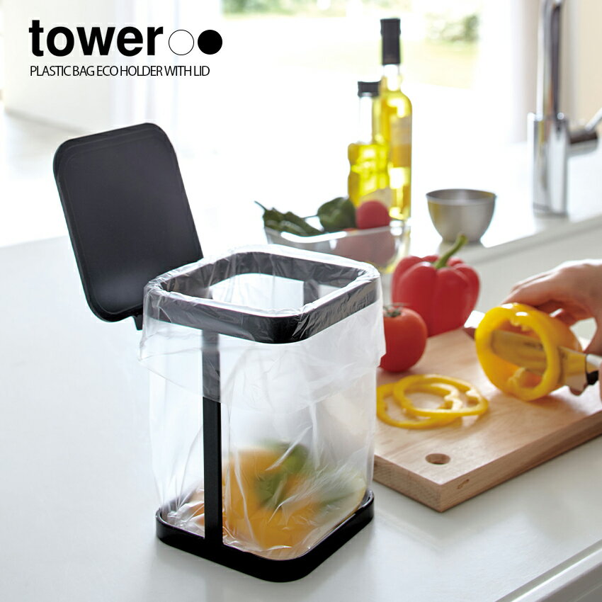 11/20 20:00〜 当店限定P7倍 × ブラックフライデー◆ 【山崎実業】蓋付きポリ袋エコホルダー タワー(ホワイト)(ブラック) // YAMAZAKI 山実 モノトーン 雑貨 人気 ごみいれ ごみ ゴミ箱 BOX ECO ミニ コンパクト