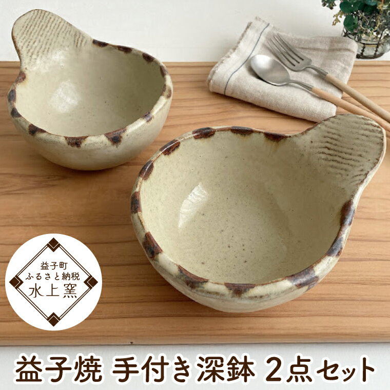 【ふるさと納税】【数量限定】【益子焼】手付き深鉢2点セット| 深鉢 手つき 深め 食洗機可 レンジ△ (BU016)