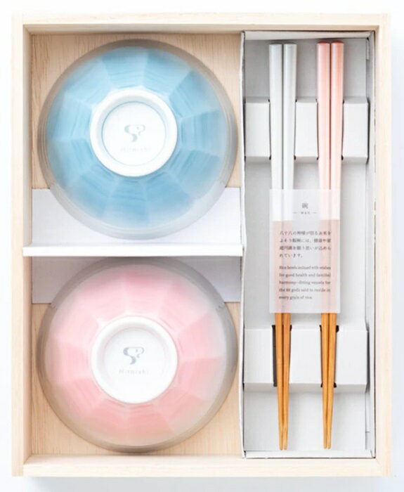 波佐見焼 hitoishi WANセット BU/PKブルー、ピンク「波佐見焼の飯碗」と「若狭塗のお箸」の食器セット。(101320B913)(ブランドボックス付属)【夫婦碗 飯碗 お箸セット 父の日 母の日 夫婦碗】【御結婚御祝・内祝・新築御祝・還暦御祝・御礼・寿・ギフト包装可能】