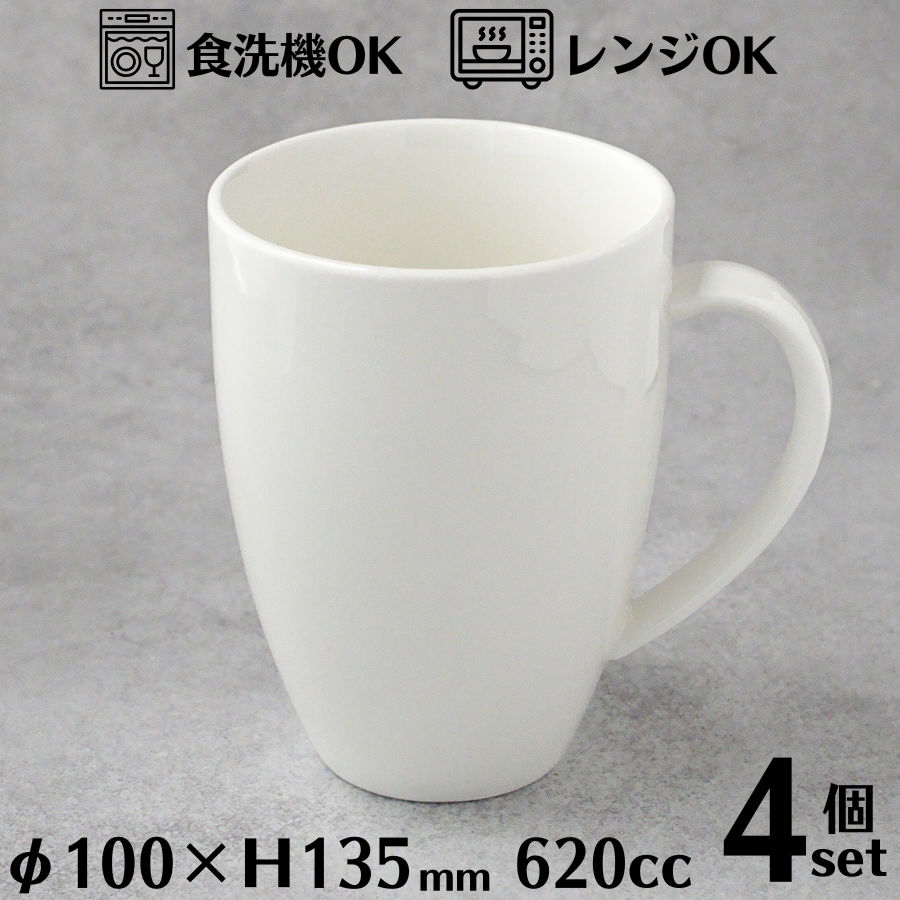 マグカップ 620cc 10cmカップ 4個セット 大容量 ホワイト 大きい コーヒーカップ 磁器 陶磁器 白い食器 北欧 おしゃれ かわいい シンプル 業務用 レストラン ホテル カフェ 食洗機対応 電子レンジ対応 TDI Aシリーズ A3394