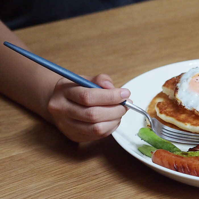 サイズ(目安) L21.5cm 重量(目安) 25g 材質 18-10ステンレス、樹脂 カラー シルバー×ブルー 使用区分 食洗機 △ (スチーム洗い ×/プロキッチンでは手洗いをおすすめしています) 原産国 ポルトガル スタッフのおすすめポイント デニムのようなブルーの柄とシルバーのコントラストがすっきりとした印象のカトラリーです。メインの肉料理や魚料理はもちろんですが、柄のラインに角ばった所がほとんどないのでパスタ料理をいただく時にも扱いやすいフォークです。 ■ご確認ください ●製造時期やロットにより刻印の位置・デザイン・色味、製品のサイズに個体差がございます。 ●刻印は見えにくく、潰れている場合があります。また、シリーズによって刻印の位置は異なります。 ●お手入れはお湯と中性洗剤のご使用をお勧めいたします。塩素系洗剤、研磨剤、スチールたわしなどは使用しないでください。 ●錆や変色を防ぐため使用後はすぐに洗い、水気をよく拭いて乾燥させてから保管してください。 ●性質上、小さな傷や金属特有のくすみが見られる場合があります。ご了承ください。 ●1点1点手作業でお作りしておりますため、大きさや柄部分の濃淡に個体差がございます。(現在は柄部分の色味が薄いものが多く見られております)買い足しの際は、ご了承のうえご注文いただけますようお願いいたします。 また、柄部分にオリーブオイル等を塗付して磨くと退色を防ぐことができます。 ●ステンレス部分にめっき加工(カラー)が施されているアイテムには、製造工程上めっき加工時に支点となる部分が点や線状にめっき未着となる場合がございます。また、樹脂でできた柄と金属部の境目やフォークの先端、その他の部位においても素材や製造特性上色むらや擦れが見られる場合がございます。いずれもクチポール社にて良品と判断されております。ご了承ください。 ※ラッピングをご希望の方はこちらをご覧ください。