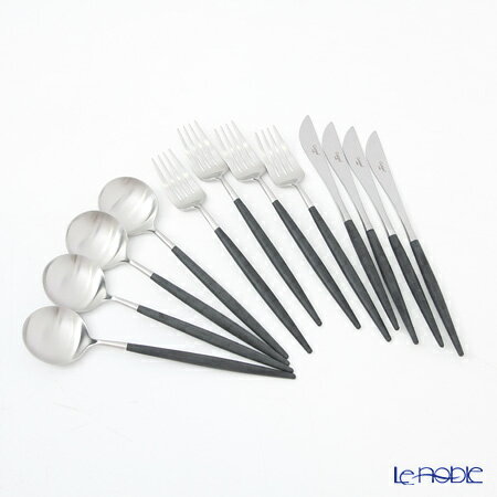 クチポール ゴア GOA ブラック/シルバー 4人用カトラリー テーブル12本セット マット仕上げ /// Cutipol ディナー カトラリーセット おしゃれ 高級 ブランド ステンレス インスタ映え 食器 // ギフト プレゼント 贈り物 結婚祝い 退職祝い 内祝い