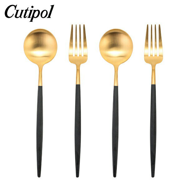 クチポール Cutipol カトラリー 4点セット GOA ゴア ディナー4点セット フォーク/スプーンブラック×ゴールド セット おしゃれ あす楽