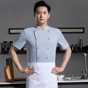 吸湿速乾 薄手 半袖 ダブルボタン コックコート 男女兼用 厨房 調理服 ユニフォーム シェフ服 綿混 業務用 作業着 春夏 白 黒 灰 青