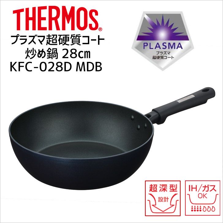 ■ サーモス 炒め鍋 KFC-028D MDB THERMOS thermos プラズマコート 高耐久 フッ素 柄付 IH対応 深型 煮込み 28cm