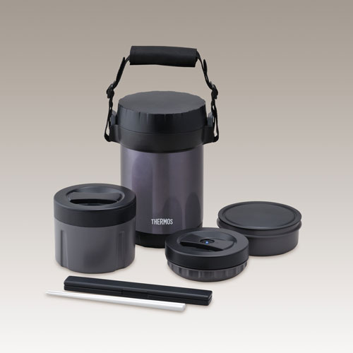 【返品種別A】□「返品種別」について詳しくはこちら□「おひとり様2点まで」2013年08月 発売◆温かいごはんとスープで、お弁当をしっかりした食事として楽しむステンレスランチジャーは、スープ容器がついていて、温かいごはんとスープを一緒に楽しめます。ごはん容器、スープ容器、おかず容器と、ストラップのついた保温容器、ハシ、ハシケースのセットです。◆おいしさの仕組みごはんとスープはあたたかく保温、いたみやすいおかずは常温でキープ。◆冷たいメニューにも! 冷たいメニューも食べごろ温度でおいしさキープ。◆電子レンジ対応の容器内容器は電子レンジに対応。 ※フタははずしてください。◆保温容器は丸洗いOK! 保温容器は丸洗いもでき、衛生的です。 ※水中に放置しないでください。◆食器洗い乾燥機対応内容器、ハシ、ハシケースは食洗機に対応して、お手入れも簡単です。 ※保温調理器は食洗機に入れないでください。◆持ちやすいストラップ保温容器本体には持ちやすいハンディ&ショルダーストラップがついています。◆たっぷり入ってコンパクト! 1膳×3.8倍(約1.6合)対応 ※1膳=約0.2Lの場合■ 仕 様 ■カラー:ミッドナイトブルー容量おかず容器:0.4Lごはん容器:0.75L、保温米飯容量(炊く前のお米の量)の場合0.29Lスープ容器:0.3L本体サイズ(約):幅16.0×奥行13.5×高さ23.0cmハシ寸法:約19.5cm重量(約):1.0kg保温効力(6時間):70度以上付属品:ハシ、ハシケース ※保温効力とは、室温20℃において製品に規定量の95℃の熱湯を満たし、所定時間放置した場合の温度[JBG2000MDB]サーモス調理家電>水筒・マグ・弁当箱>ランチジャー・保温弁当箱>ランチジャー