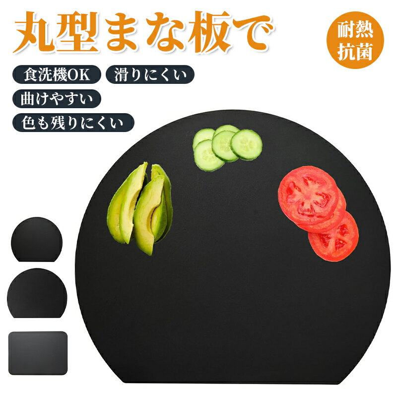 【100円OFFクーポン!送料無料】まな板 食洗機対応 かまぼこ型 耐熱エラストマー 穴なし 滑り止め 丸いまな板 まないた 黒 小さめ エラストマー 耐熱 抗菌 ノンスリップまな板 大きい ブラック おしゃれ D型 丸 衛生的 薄型 カッティングボード ゴム 丸める 厚型 キッチン