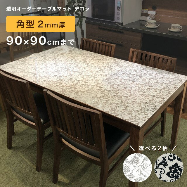 テーブルマット 透明 柄付き オーダー 両面非転写 傷隠し デコラ 角型 2mm厚 90×90cmまで 応接 事務 テレビ台 チェスト 滑りにくい 滑らない ズレない アラベスク リバーレース ダイニング 傷防止