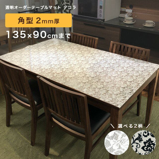 テーブルマット 透明 柄付き オーダー 両面非転写 傷隠し デコラ 角型 2mm厚 135×90cmまで 応接 事務 テレビ台 チェスト 滑りにくい 滑らない ズレない アラベスク リバーレース ダイニング 傷防止