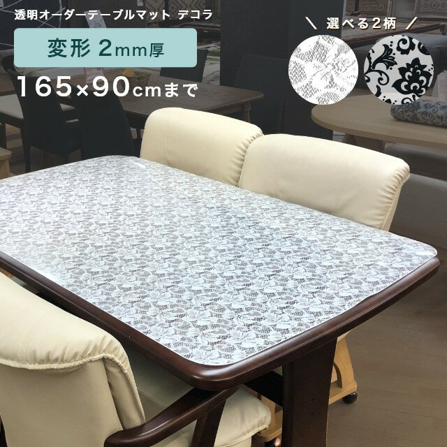 テーブルマット 透明 柄付き オーダー 両面非転写 傷隠し デコラ 角型 2mm厚 150×90cmまで 応接 事務 テレビ台 チェスト 滑りにくい 滑らない ズレない アラベスク リバーレース ダイニング 傷防止