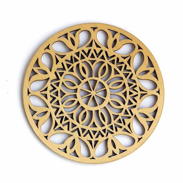 リトアニアの木製コースターです。レーザーで 繊細な透かし彫りをした薄い木の板でできています。 金属やプラスチックと違って ぬくもりのあるやさしい質感が 魅力ですネ。 美しい透かし彫りを活かして、オーナメントとして飾っても すてきです。アイディア次第で使い方いろいろ。 ルームライトの元で影絵を楽しむこともできます♪ ●天然木を使用しているため製品により色の差がございます。 画面表示の色については、お使いのモニタやブラウザにより 再現性が異なるため、実物の色との差がございます。 ご理解、ご了承の上ご注文くださいますようお願いいたします。 素材: 白樺の合板 サイズ: 直径10cm 厚さ3mm