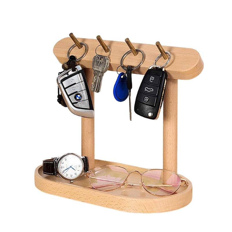 キースタンド 木製 キーフック キートレイ 玄関収納 鍵置く アクセサリースタンド ジュエリースタンド 携帯電話 腕時計 化粧品 香水 メガネ 小物掛け 陳列棚 小物入れ 簡単組立 多機能トレ