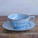 スウェーデンの陶磁器メーカー Upsala Ekeby(Gefle)のカップ&ソーサーです。 大きめでたっぷりサイズのカップです。 Grand というシリーズのもので、スウェーデンの陶器デザイナー Arthur Percy によるデザインです。 さらっとしたマットな質感です。 淡いブルーでゴールドのふちどりが入ったシンプルなデザインですが、側面が絞られたように立体的に造形されており、角ばった持ち手の部分にもデザインのこだわりが見て取れます。 1920~30年代ごろのものと思われます。 【状態について】 特に目立つチップやヒビはありません。 カップの内側やソーサー中央付近に、貫入と思われるひび割れが見えます。 そのほか、わずかな擦り傷や色剥げはあるかと思いますが、全体として傷は少なく、つやがあり、アンティーク品としては非常にきれいな状態です。 製品そのものの品質として、小さな絵の具汚れや色むら、黒点、不整形等はある場合があります。 詳細は写真にてご確認ください。 --- ■カップ: 高さ約 5.8cm 口径約 11cm ■ソーサー: 直径約 16.2cm ※ 写真に写りこんだデコレーション等はお届け内容に含まれません。