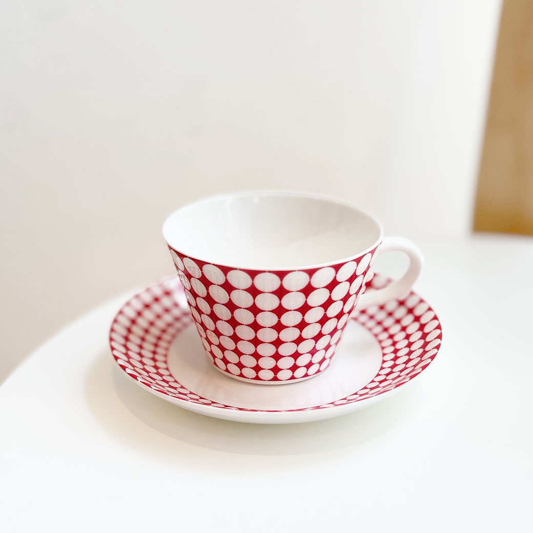 内容・EVA 493-08/3 ティーカップ&ソーサー×1・EVA 493-03 プレート18cm×1 材質陶磁器 サイズ (カップ)口径:10.5cm 高さ:6cm 容量:300ml (ソーサー)直径:15.5cm 高さ:3cm (プレート)直径:17.5cm 高さ:2cm ブランドGustavsberg(グスタフスベリ) / Sweden(スウェーデン) 生産国Sweden(スウェーデン) シリーズEva(エヴァ) デザイナーStig Lindberg (スティグ・リンドベリ) 化粧箱商品のみ(箱なし) 備考グスタフスベリの復刻版は、ミッドセンチュリーの時代の製造方法を今に引き継ぎ、窯を修理し、当時の原料を最大限に使っています。これらの商品は、当時と同じ手法で作られているため、現代の工業製品に比べ、色のムラやプリントはげ、黒点、インク滲み、ゆがみ、がたつきなどが多く見られます。また、バックプリントは製造時期により異なることがございますが、お選びいただく事は出来ません。 引き出物対応しておりません。 関連キーワード: コーヒーカップ ティーカップ 珈琲カップ 紅茶カップ カフェオレ ブランド食器 北欧食器 ギフト 新生活 記念日 新婚 皿 【食器・カトラリー】 【グスタフスベリ】 【エヴァ】 【カップ&ソーサー】 【ティーカップ】 【セット】 【レッド】 【color:柄あり】 【スウェーデン】 商品について 配送について ラッピングについて 関連商品【復刻版】 グスタフスベリ エヴァ 493-08/3 ティーカップ&ソーサー + 493-03 プレート18cm GUSTAVSBERG Eva 昔ながらの方法で丁寧に作られるグスタフスベリ/ Gustavsberg 1825年創業のグスタフスベリ。ミッドセンチュリーの時代の製造方法を今に引継ぎ、窯を修理し、当時の原材料を最大限に使い、スウェーデンで手作りに近い形で作られています。近代的な工業製品にはない、味わいとぬくもりがグスタフスベリの魅力のひとつ。「 Made in Sweden 」の誇りを胸に、職人たちは仕事をしています。 北欧ミッドセンチュリーのトップランナー、スティグ・リンドベリのデザイン 木漏れ日をテーブルで感じることができる、ベルサ / Bersa 戦後の北欧デザイン界を牽引し、スウェーデンで最も重要なデザイナーとして知られるスティグ・リンドベリ。彼はそのキャリアをグスタフスベリで築き、多くの優れた作品を残しました。その彼を代表するデザインであり、グスタフスベリで最も人気のあるのがベルサです。茎までしっかりと木の葉が描かれた印象的なシリーズです。 菊の花が咲きほころぶ、アスター / Aster 版画のように黒い縁取りがされた菊の花が少しレトロな雰囲気を醸し出しています。レッドとブルーの2色があります。 見慣れた水玉模様なのにどこか斬新な、アダムとエヴァ/ Eva Adam 規則性のある水玉模様のアダムとエヴァ。青がアダムで、赤がエヴァ。見慣れた水玉模様でも、リンドベリが手掛けると途端に垢ぬけた洒落た雰囲気になります。 凛とした佇まいで気品漂う、サリックス / Salix 柳の葉を繊細にモノトーンで表現したサリックス。グスタフスベリの中では、控え目なデザインですが、凛とした気品を感じさせます。レッドとブラックの2色があります。 北欧ミッドセンチュリーの雰囲気が色濃い、チュールチュール / Turtur デフォルメされていながらも、鳥の羽模様がそれぞれ異なっていたり、植物模様が独創的に描かれていたりと、リンドベリの作風を堪能できるシリーズです。 どこか懐かしい、ホッとするデザインのリブ / Ribb ブラウンの縁取りと放射線状に広がったストライプで構成されたリブ。堅苦しさのないシンプルなデザインで、どこか懐かしさを感じさせます。 たわわに実った青いプルーンが並んだプルーヌス / Prunus ぽってりとたわわに実ったプルーンがレトロ調にデザインされたプルーヌス。愛らしいデザインで食卓が華やぎます。 グスタフスベリとは? 1825年創業のグスタフスベリ。スウェーデン・屈指のデザイナー、スティグ・リンドベリをはじめとする優れたデザイナーがグスタフスベリにて数多くの傑作を生み出しました。現在は工房だけを残して、当時のデザインを復刻して生産しています。 ミッドセンチュリーの時代の製造方法を今に引き継ぎ、窯を修理し、当時の原材料を最大限に使って生産されています。 関連商品