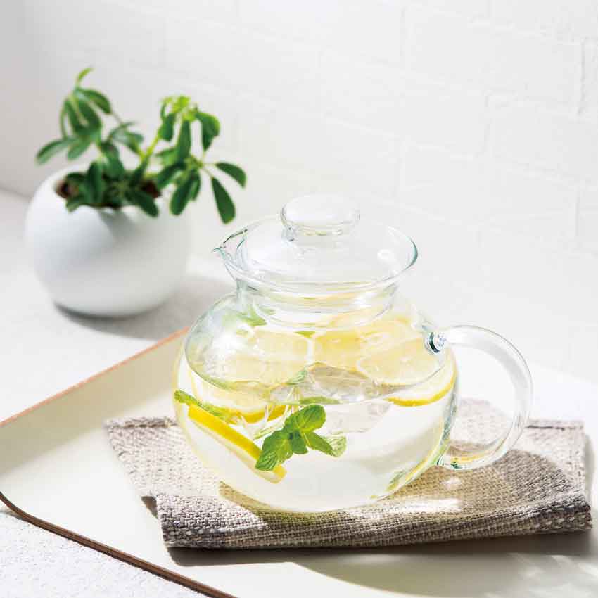 サイズ(目安) φ14.5(取っ手含む最大幅18.5cm)×H15cm 容量(目安) 1000ml 重量(目安) 245g 材質 耐熱ガラス 使用区分 電子レンジ ○、食洗機 ○、直火(ティーウォーマーのみ)、オーブン × 原産国 チェコ ■ご確認ください ●耐熱性ですが、急激な温度変化により、割れ・破損の可能性がございます。冷えた器に高温のものを急に入れるなどのご使用は避けて下さい。 ●製造工程において生じる、サイズや厚みなどの若干の違い、凹み、歪み、気泡、触っても凹凸を感じない小さなキズなどが見られる場合がございます。こちらについては、業務用輸入製品の性質上のものととらえまして、不良商品対象外とさせていただいております。 ※ラッピングをご希望の方はこちらをご覧ください。ボヘミアクリスタル エヴァ ティーポット 1000ml / BOHEMIA Cristal ぷっくりフォルムが愛らしいガラスのティーポット 1975年にチェコのガラス製品を販売する目的で創立された グラスウェアブランド「ボヘミアクリスタル社」から、 紅茶好きさんにはたまらない “ティータイムを目でも楽しむ”素敵なガラスのティーポットが届きました。耐熱ガラス性のティーポットと言うと、 ぽってりした厚みのあるガラスを想像しますが、 このエヴァのポットは見た目のエレガントさからも分かるように 軽やかな仕上がりが魅力。 かと言って普段使いに頼りなさを感じることはありません。 電子レンジ対応、食洗機対応、直火は不可ながら、 ティーウォーマーを使うことができるタフさもきちんと備わっています。 夏場は氷を浮かべたアイスティー、寒い日は温かいお茶をゆったりと。 オールシーズンお使いいただけます。 愛らしいぷっくりとした丸みは茶葉がよく踊り、 美味しい紅茶を淹れることができるカタチ。 ローズヒップティー、バタフライピーなどの色の美しいハーブティーや お湯を注ぐとゆっくりと花が開く菊花茶など、 透明感の美しいガラス越しに映る変化を楽しむことができるのは、 ガラスのティーポットならではのご褒美時間。 容量はたっぷり1000ml。 満水でお使いになることは稀かと思いますが、 ひとり分もご家族の分も美味しく淹れられるサイズです。 使い心地も快適です。 大きめのハンドルは全ての指で握ることができ、 ポットとの距離が程よく確保できるため、 注いでいるときに触れる心配も少なくなっています。 また、蓋を外せばピッチャーのように使うことも。 茶漉しがついていないため、注ぐ際はティーストレーナーをご使用ください。 お揃いのガラスのカップ&ソーサーをコーディネートすれば、 さらに特別な雰囲気が生まれます。