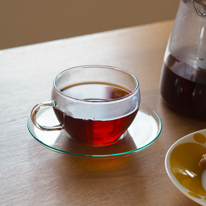 サイズ(目安) カップ:Ф9×H6cm(取っ手含む最大幅12cm) ソーサー:Ф14.3×H1cm 容量(目安) 250ml 重量(目安) 143g 材質 耐熱ガラス 使用区分 電子レンジ ○、食洗機 ○、オーブン × 原産国 チェコ ■ご確認ください ●耐熱性ですが、急激な温度変化により、割れ・破損の可能性がございます。冷えた器に高温のものを急に入れるなどのご使用は避けて下さい。 ●製造工程において生じる、サイズや厚みなどの若干の違い、凹み、歪み、気泡、触っても凹凸を感じない小さなキズなどが見られる場合がございます。こちらについては、業務用輸入製品の性質上のものととらえまして、不良商品対象外とさせていただいております。 ※ラッピングをご希望の方はこちらをご覧ください。ボヘミアクリスタル エヴァ ティーカップ&ソーサー 250ml / BOHEMIA Cristal 紅茶の色を堪能できるガラスのカップ&ソーサー 1975年にチェコのガラス製品を販売する目的で創立された グラスウェアブランド「ボヘミアクリスタル社」から、 紅茶好きさんにはたまらない“ティータイムを目でも楽しむ” 素敵なガラスのカップ&ソーサーが届きました。耐熱性のエヴァのカップ&ソーサーは寒い日は温かな紅茶、 暑い日は冷たいアイスティーと、季節を問わずお使いいただけます。 耐熱ガラスと言うと、ぽってりした厚みのあるガラスを想像しますが、 カップもソーサー軽い仕上がり。 かと言って普段使いに頼りなさを感じることはありません。 電子レンジ対応、食洗機対応とタフさもきちんと備わっています。 透明感の美しいガラスはお茶の色合いをダイレクトに楽しむことができるから、 特に綺麗な色の紅茶を淹れるときは自ずと手が伸びるはず。 背の低いころんとしたカップには指を安定してかけられる 大き目のハンドルが付き使い心地も◎。シンプルなデザインは普段使いはもちろん、 おもてなしのシーンまで活躍してくれるから、 2客、3客と揃えておくと重宝します。 お揃いのエヴァのティーポット、 またはストレーナー付きのチャームのティーポットと 一緒にリラックスタイムをお過ごしください。