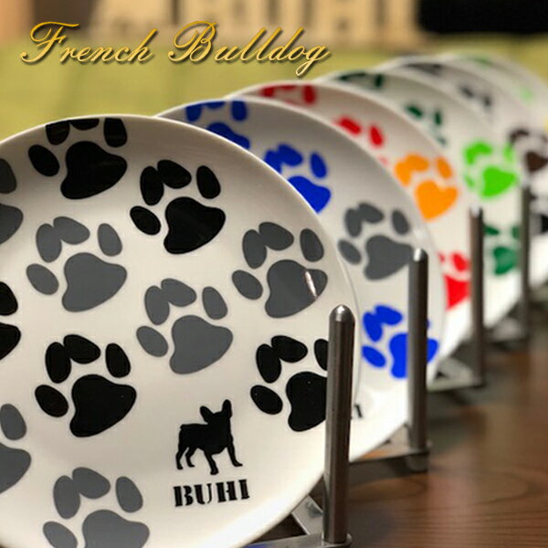 BUHIフレブルのシルエットと肉球の オリジナル デザイン プレート 18cm 丸皿インテリアにも使える犬・動物・壁掛けフレンチブルドッグ・ウォールプレート