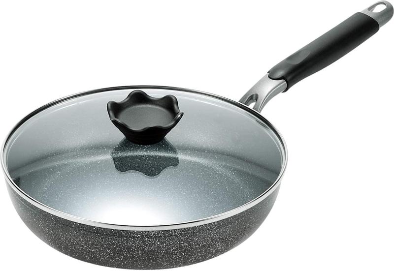 丈夫で軽量 ネオストーンプレミアム フライパン 26cm ガラス蓋付き 3層ハード構造 耐摩耗性試験100万回クリア 少量の油で調理できるから健康的で経済的 軽量構造 100V・200V電磁調理器 ガスな
