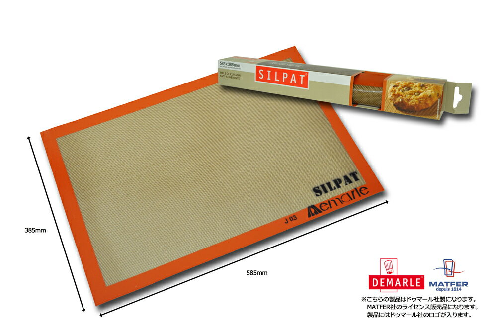 メーカー希望小売価格はメーカーカタログに基づいて掲載しています 丸型(直径約3センチ)敷紙を印刷する場合はコチラ ハート型(直径約3センチ)敷紙を印刷する場合はコチラ サイズ 585×385mm 耐熱温度 -40℃〜250℃ 原産国 フランス 【繰り返し使えて、経済的!】 プロが使うアイテム。洗って繰り返し使え経済的♪ しかも家庭で使うなら買い替えの心配無用です。(※使用頻度によります。) ※注意!マット上で鋭利なもので切り付ける 作業は厳禁です。 マットが切れて劣化の原因になりますのでくれぐれもご注意下さい。 ※マット自体をハサミ等でカットしてご使用はご遠慮下さい。 ※こちらの製品はMATFER社のライセンス販売品になりますので、製品にはドゥマール社のロゴが入っております。