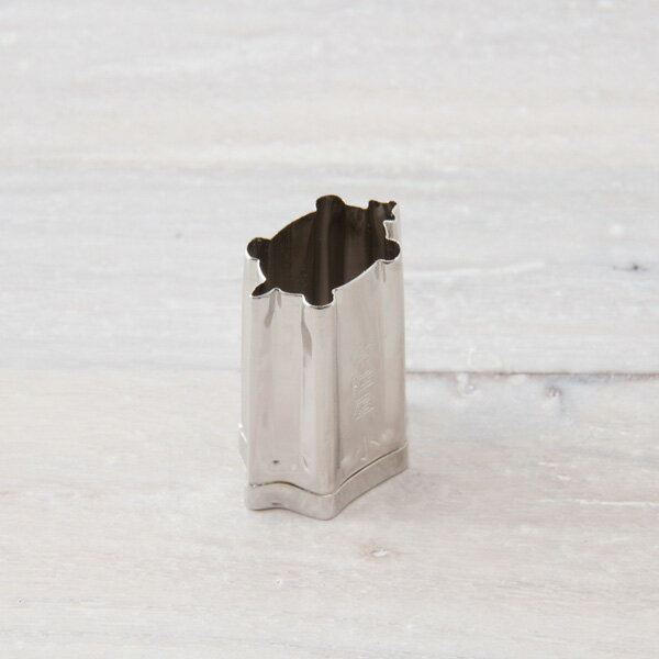 サイズ(目安) 22×34mm H45mm 材質 真鍮(ニッケルメッキ加工) 原産国 日本 スタッフの おすすめポイント 「ヌキガタで抜く」ちょっとした事ですがこのひと手間を加えることで、料理や食卓に季節感を生みだし温かみのある雰囲気を演出してくれます。プロキッチンでご紹介している抜き型はひとつひとつ職人さんの手で形作られ、精巧で道具としての美しさを持ち合わせまさに一生もの。力を入れなくてもスーッと抜くことができ、繊細なパーツ部分の細工にも職人技が光ります。縁起の良い亀のモチーフはお正月やハレの日におすすめ。おせち料理やお雑煮のお椀には鶴の抜き型と一緒にめでたさを、運動会のお弁当にはうさぎの抜き型と一緒に遊び心を。抜き型は型抜いたモチーフだけでなく、残った方もとっても可愛いんです♪抜いた部分にひき肉を詰めて調理したり、別の食材で抜いたものを重ねたり、色々なアイデアで楽しんでください。お弁当に彩りを添える小さなサイズから、季節感が伝わってくる大きなサイズまで各種取り揃えています。用途に合わせてお選びください。 ■ご確認ください ●初めてご使用になる時は、食器用洗剤を付けてスポンジ等で内面をよく洗ってください。 ●ご使用後はよく洗い、水気をよく拭き取ってください。 ●塩素系漂白剤はお使いにならないでください。メッキが剥がれる恐れがあります。 ●金属タワシ、研磨剤付ナイロンタワシやクレンザーはご使用にならないでください。メッキが剥がれる恐れがあります。 ●力を入れすぎると、変形する恐れがあります。 ●一つ一つ手作りされているため、個体差が見られます。あらかじめご了承ください。 ●「常陸屋」のロゴが刻印されたものに順次切り替わります。(写真右) ※ラッピングをご希望の方はこちらをご覧ください。