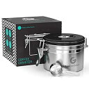 Coffee Gator ステンレススチール製コーヒー粉と豆キャニスター 日付トラッカー CO2放出バルブ 計量スクープ付き Sサイズ グレー
