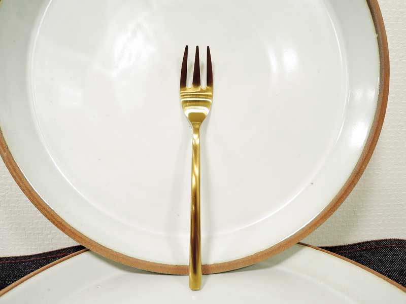 サイズ 幅15 cm 送料 通常便A or ポスト便(メール便) 材質 18-8ステンレス(チタンコーティング) 備考 モニターによる微妙な色違いはご了承下さい。 製造工程上、色や長さの個体差が生じる場合がございます。。 食器洗い機でご使用いただけます。 在庫 在庫管理には十分注意しておりますが、実店舗でも同時に販売しているため、 ご注文いただいても売り切れになる場合がございます。ご了承下さい。DETAIL Gold Cutlery Dessert Fork Gold Cutlery Dessert Forkゴールドカトラリー デザートフォーク 着飾らない、素材のマットな質感や美しさを生かしたカトラリーシリーズ。 すらっとしたフォルムと上品な質感は、毎日見ていても飽きません。 Related products Gold Cutlery / ゴールドカトラリー ディナーナイフ ディナーフォーク ディナースプーン デザートフォーク デザートスプーン コーヒースプーン