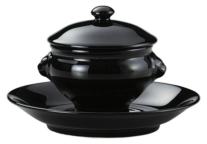 黒釉ライオン 220cc 蓋付 トリュフ 小 スープセット (受皿付) 日本製 側面の獅子頭モチーフがゴージャスな ライオントリュフ