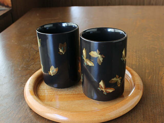 【アウトレット】【美濃焼】黒金蝶切立 長湯呑 / 黒い食器 金彩 蝶々 レトロなシック&ゴージャス