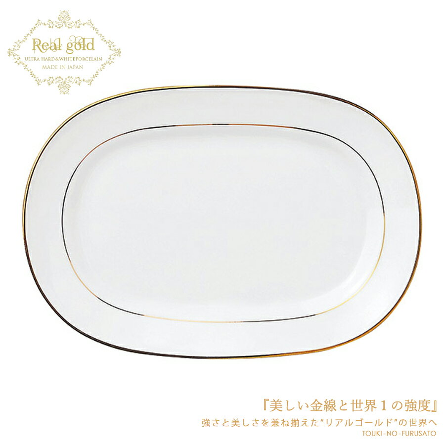 \クーポン配布中!/リアルゴールド14吋プラター 長径36cm 強化磁器 金線 ゴールド ゴージャス ライン 電子レンジOK 業務用 陶器のふる里 stockヤ
