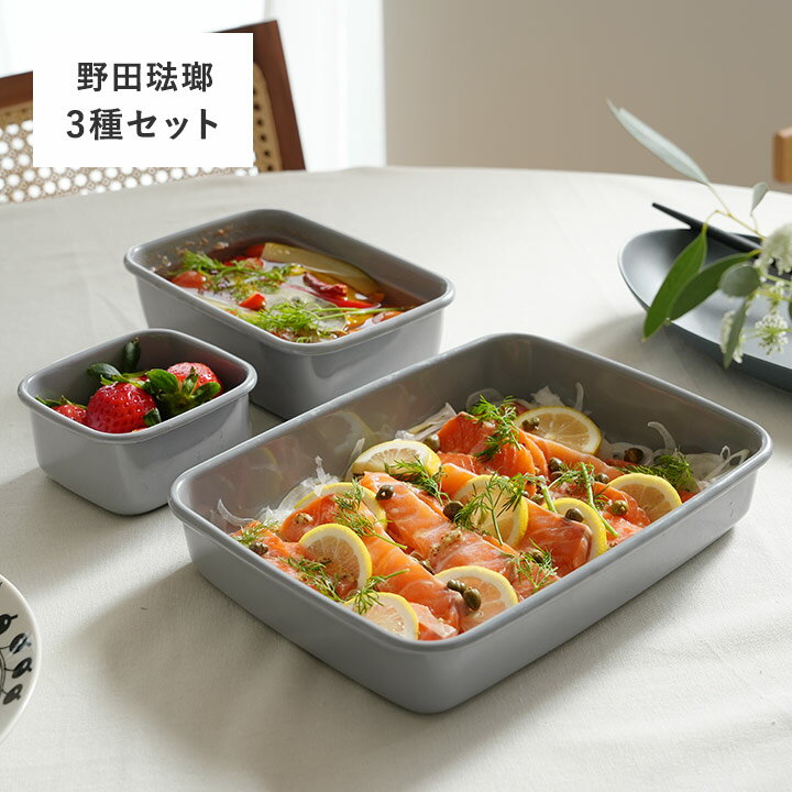 野田琺瑯 ホーロー 保存容器 3種セット 琺瑯 保存容器 +Gray プラスグレイ (スクウェアS レクタングル深型M レクタングル浅型M)/野田琺瑯【送料無料】