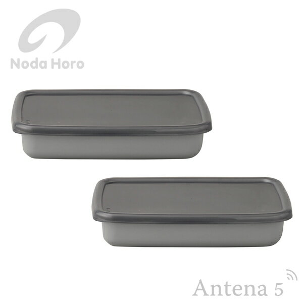 野田琺瑯 ホワイトシリーズ +Gray レクタングル浅型(S)×2個セット シール蓋付 【保存容器 漬物 ノダホーロー キッチン雑貨 デザイン雑貨 台所 日本製 北欧 グレー】