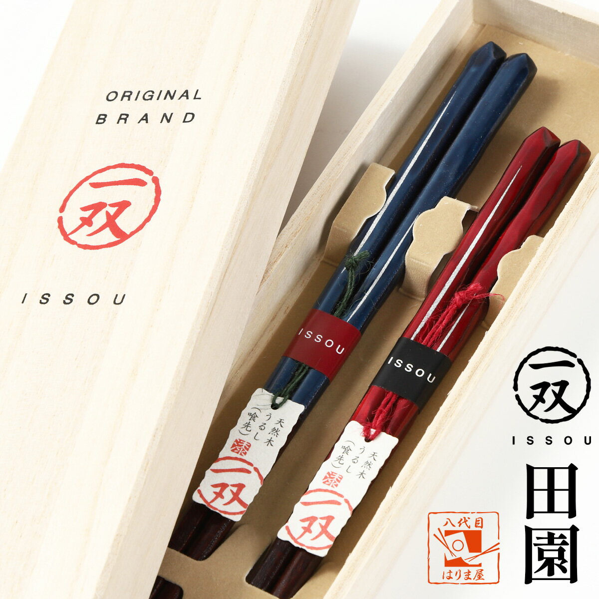 母の日、父の日、敬老の日、ご結婚祝い等、あらゆる贈り物、 プレゼントにお使いいただいております。 長さ:男性用23.0cm 女性用21.0cm 木地:天然木 形状:削り 先の形:角 塗装:上部:ポリエステル 下部:漆 <商品説明> 伝統のお箸で食事する贅沢なひととき、、、 高級感が人を魅了してやまない!夫婦箸を桐箱に入れてご用意しました。 若狭塗り箸の技法は、今から約四百年前に 誕生しました。 このお箸は伝統技法に現代的 デザインを取り入れました。 木地には天然木が使われて います。 ご結婚お祝い 夫婦箸は贈り物に最適です。 【のし紙をご希望のお客さまへ】 のし紙をご希望の場合は、「買い物かごに入れる」からご注文画面へお進みいただき 包装紙をお選びいただいたうえで、 「備考欄」に記入欄(記入フォーム)がございますのでご記入ください。 ”送料無料です!” 八代目 箸匠 はりま屋の由来 弊社の創業は、遡りますこと今から約160年前の江戸末期の文久(ぶんきゅう)年間になります。 初代・播磨屋忠右衛門(はりまやちゅうえもん)は、播磨国(はりまのくに)三木(現在の兵庫県三木市)から大阪に出てきて商売を始めました。 「八代目 箸匠 はりま屋」の店名は、それに因んで付けさせていただいております。 初代・忠右衛門が始めたのはお箸ではなく、漆(うるし)の商売でした。 全国各地から採れた漆の樹液を加工して、全国の漆器産地や仏壇産地、寺院などに提供していました。 当時は化学塗料がまだない時代でしたので、あらゆる木製のものに漆を塗り、金属にも焼き付けという技法で漆が使われていました。現在も南部鉄器の鉄瓶などこの技法です。 例えば、刀の鞘(さや)、鎧兜(よろいかぶと)などの武具に、箪笥や座卓などの家具類に、家の柱や床にと相当な量の漆が使われていたと想像できます。 時は経て、先代の七代目からお箸を取り扱い始め、現在に至っています。 お箸を扱うようになったのは、漆の卸しているお得意様にお箸を塗っている工房もあったので、仕入れることが出来たからです。 また、お箸は日常的に使われるものなので、みなさまのお役に立てるのかなと思った次第です。 始まりは漆でしたが、特に漆塗りのお箸にこだわらず、お客様に喜んでいただける商品を扱っていきたいと思っております。とはいえ、漆のことには精通しておりますので、ご質問いただければお答えいたします。 因みに、最近の研究で、漆には黄色ぶどう球菌、O157などに対する抗菌作用、また抗ウイルス作用も判明されていますので、漆塗りのお箸は安心してお使いいただけますので、ぜひ日々の生活の中でお使いいただけたらと思います。 八代目 箸匠 はりま屋の想い 【喜びと感動のサービス】 1.贈り物、プレゼント、記念品の提供を通じて、贈る人、受け取る人が共に喜び笑顔になれる商品とサービスの提供をして参ります。 2.日用品の販売を通じて、お客様が豊かな気持ち、幸せな気持ちになれる商品・サービスの提供を目指します。 3.喜びと感動をお届けするために、お客様の想いを受け取り、さらに一歩上のサービスを目標に掲げ実行します。 【感謝の気持ち】 私達のまわりのすべての人、物に感謝します。 お客様、取引先様、従業員、そのほか私達のサービスに係るすべての人たち、会社、物に感謝します。 【誠実な企業活動】 誠実な企業活動を通してお役に立てるよう日々精進してまいります。 これからも【八代目 箸匠 はりま屋】を何卒ご贔屓の程、よろしくお願い申し上げます。商品名 夫婦箸 一双 田園 桐箱入り 商品説明 夫婦箸:2本が揃って1膳となるお箸は、 支えあってともに過ごしていく 夫婦の姿に例えられるアイテム。 また「幸せの箸(橋)渡し」 アイテムとして縁起が良いと されております。桐箱入りでお届けしますので 結婚祝いや両親へのプレゼント にもおすすめです。 粋柄:センスのあるデザイン。テイストを感じるクラフトワーク。 そんな言い方のすべてを、 私たちは「粋」というひと言に込めてきました。 粋柄を創作することは、生き方そのものにこだわること。 新たな拡がりを見せる、一双オリジナルスタンダード。 光沢のあるブルーとワインレッドの地に すーっと引かれたシルバーのライン。 洗練された一双オリジナルデザインです。 華やかなデザイン性だけではなく四角形になった箸先は つかみやすい形状になっています。 サイズ、仕様 長さ:男性用23cm 女性用21cm 生産地:日本 MADE IN JAPAN 日本製 食洗機:非対応 ※メール便(クロネコDM便)は日時指定、代引きはできませんのでご注意ください。 ※北海道、沖縄への代引き及び日時指定は別途料金がかかります。 ご注文後の自動返信メールには別途料金は記載されておりません。 (送料を修正したメールを後程送りますので、ご確認ください) 下記のようなイベント、シーンにご利用ください。 贈り物 結婚祝い 結婚式の引き出物 お祝い 返し 結婚内祝い 結婚 お祝い お返し 内祝い 御年賀 お中元 お歳暮 還暦祝い 古希