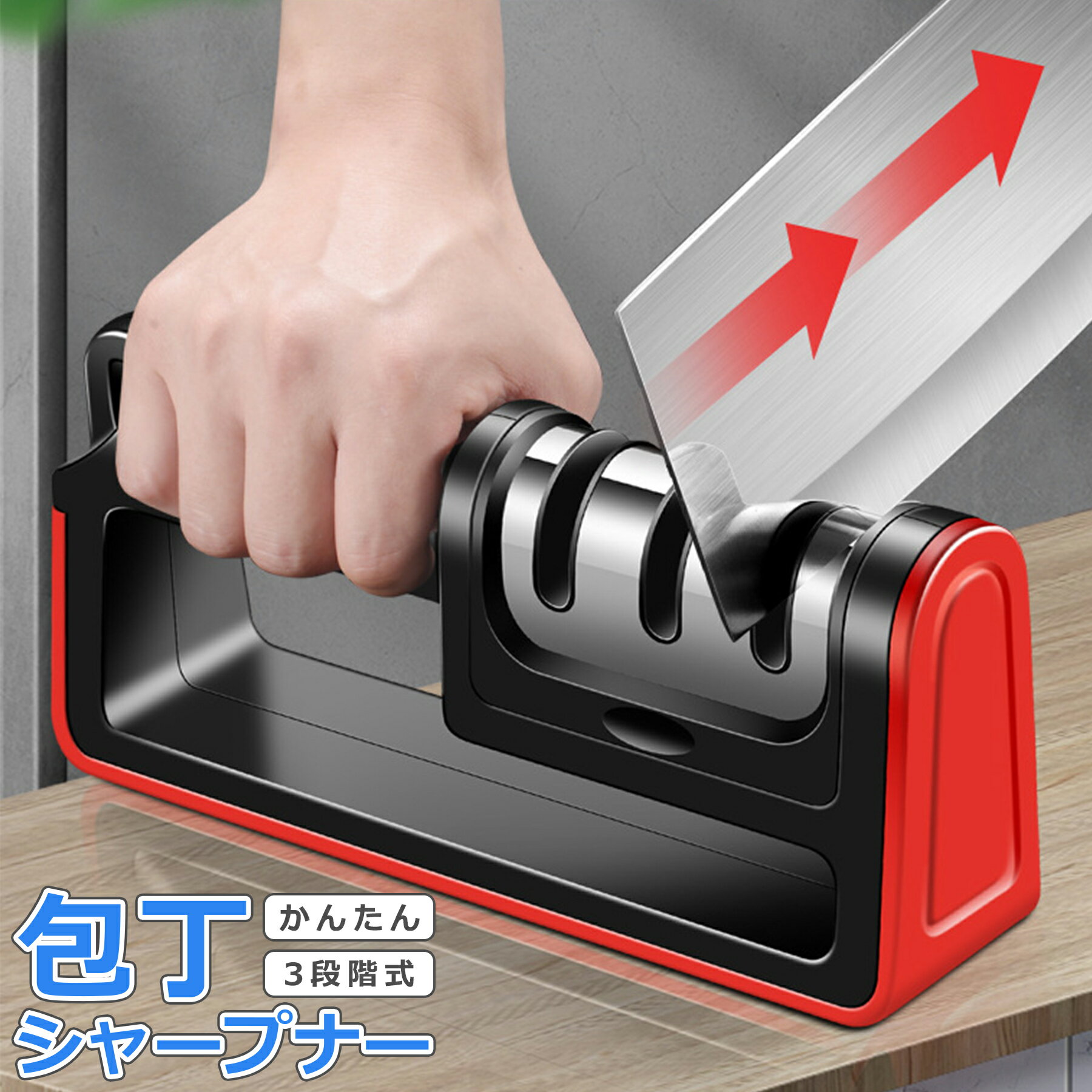 包丁 研ぎ器 シャープナー 3段階式 包丁磨き 砥石 仕上げ 研磨 切れ味向上 ダイヤモンド セラミック タングステン 滑りにくい コンパクト 長持ち 高耐久性