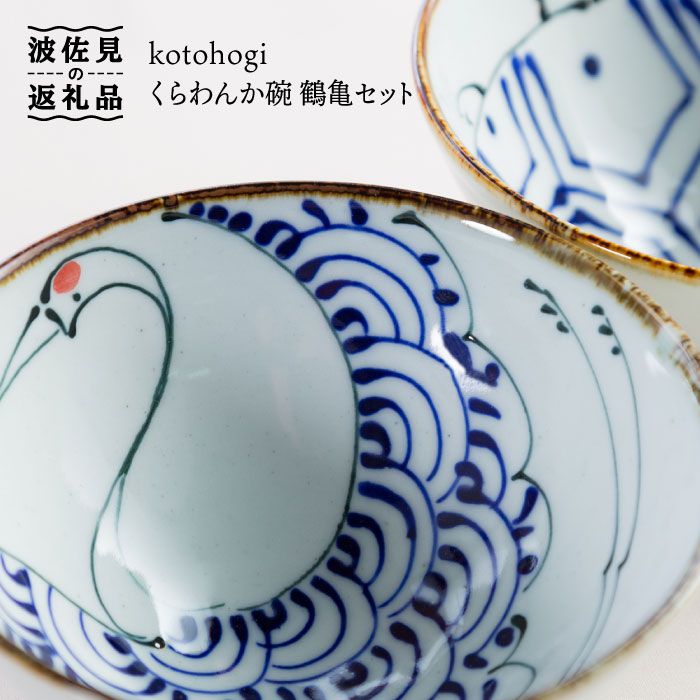 【ふるさと納税】【波佐見焼】kotohogi くらわんか碗 茶碗 鶴亀 セット 食器 皿 【西海陶器】 [OA108]