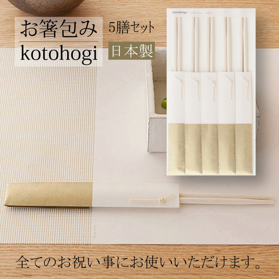 お箸包み kotohogi 5膳入り お祝い箸 祝箸 箸 割り箸 お箸袋 吉野桧箸 両口箸 日本製 国産 伊予水引 水引飾り おうちごはん ゴールド 美濃和紙 おしゃれ シンプル かわいい 和モダン