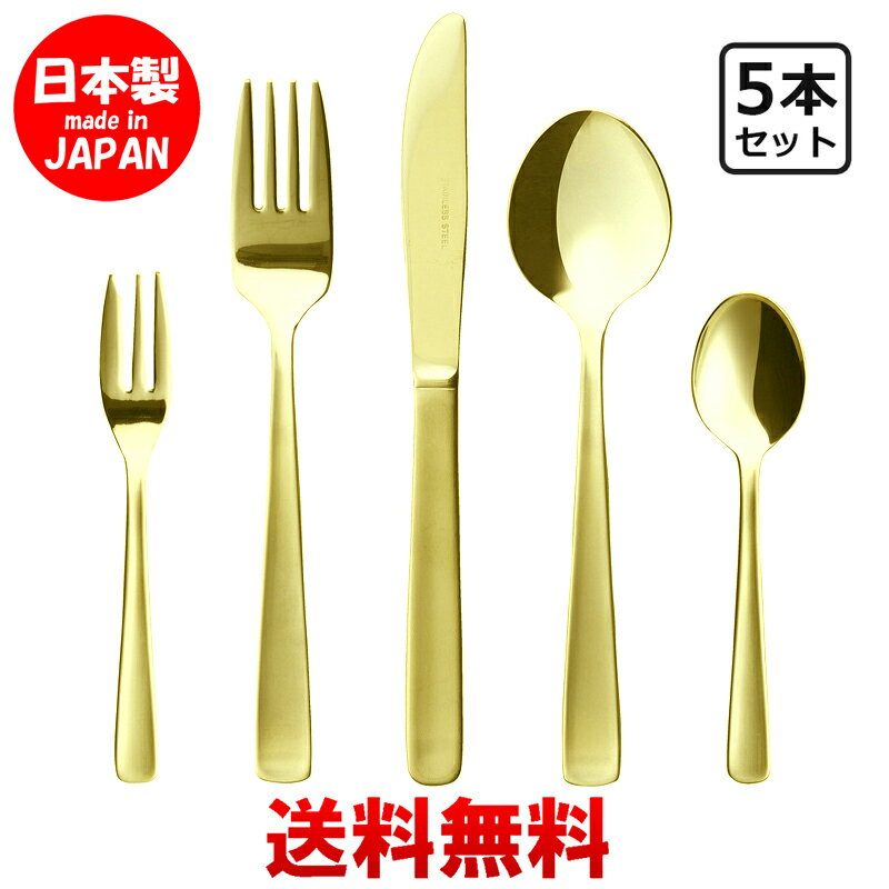 P&S ライラック おひとりさま カトラリー 限定ゴールド 5本セット 【 送料無料 】 食洗機対応 業務用 カフェ 洋食器 定番 カトラリーセット ナイフ フォーク スプーン セット おしゃれ かわいい 日本製