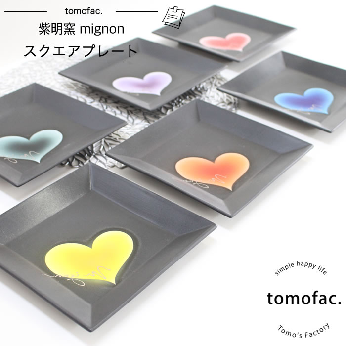 波佐見焼 mignon スクエアプレート ブラック プレゼント ギフト テーブルコーディネート 洋食器 イベント クリスマス ハート 5カラー