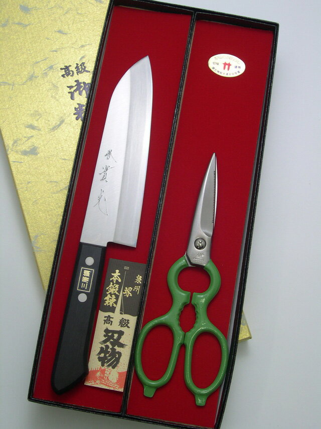 (1)三徳包丁 白鋼(ツバ付) ●鋼:白鋼 ●柄:黒合板 ●サイズ:165mm (2)キッチンバサミ ●鋼:ステンレス 魚や鳥などの固い骨を切るのには必ず出刃包丁を使用して下さい。 一般的なご家庭用包丁とキッチンバサミのセットを用意しました。価格もお手頃なので、大変人気があります。 【特典】 二点セット用の高級金箱にお名前を入れた包丁は、世界に一つのプレゼントとして最適です! スタンダード ひのき まな板 食洗器対応 ひのき まな板 スタンド付き ひのき まな板 小(39×20cm) 中(42×24cm) 大(45×24cm) 小(36×20cm) 大(39×24cm) 小(22×22cm) 中(30×18cm) 大(39×24cm) 包丁差 砥石 家庭用砥石 斜めタイプ K-45 砥石 京セラ シャープナー大切な方へ贈るお祝いやプレゼントに最適なギフト対応を承ります。 各商品に付いているアイコンの説明は以下の通りです。 ※名前を入れた商品は交換、返品はできません。