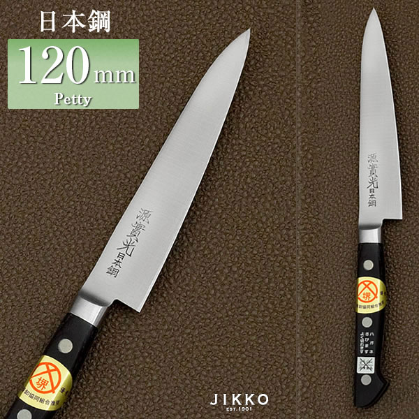 日本鋼 ツバ付 ペティ 120mm 實光包丁(堺包丁) 堺 名入れ 日本製 国産 名前入れ 鋼 安来鋼 jk_h
