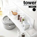 山崎実業 tower タワー マグネット キッチン棚 ワイド 選べるカラー:ホワイト/ブラック | ウォールラック 壁収納 調味料棚 マグネット 磁石 L字 コンロ周り 整理 壁面収納 シンプル
