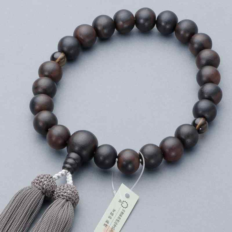 [仏壇屋 滝田商店] 京念珠 数珠 男性用 縞黒檀 (艶消) 茶水晶仕立 22玉 正絹頭付房 数珠袋付 すべての宗派で使える 証明書付