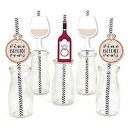 Big Dot of Happiness Vino Before Vows - Paper Straw Decor - Winery Bridal Shower or Bachelorette Party Striped Decorative Straws - Set of 24