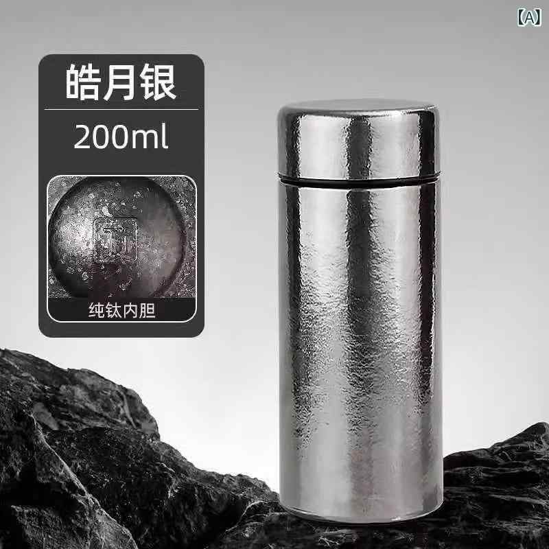 保温 マグカップ レディース メンズ 兼用 携帯用 ミニ 水筒 纯钛 泡茶 ポケットサイズ オフィス ラッキーアイテム シルバー