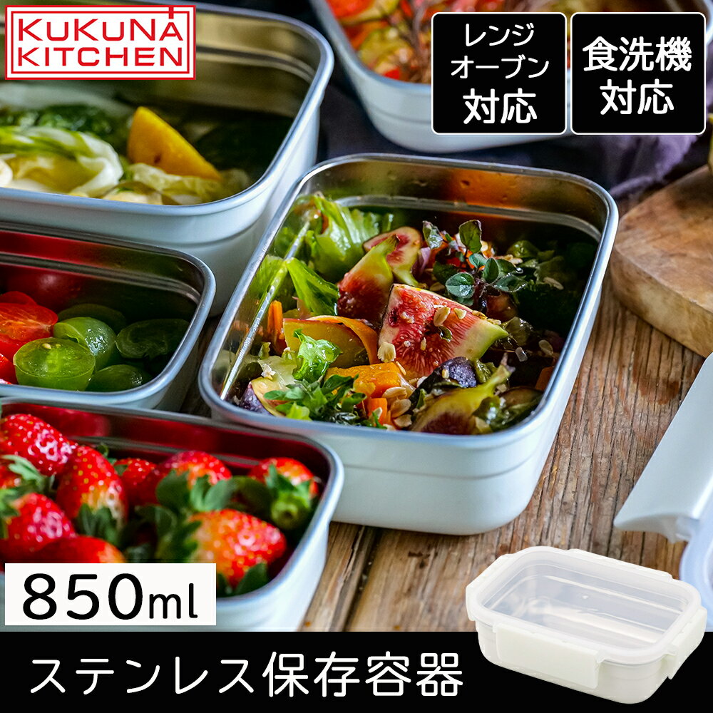 保存容器 ステンレス ククナキッチン MEAL BOX 0.5L 0.85L 0.92L 1.5L ホワイト 白 ミールボックス 長方形 四角 冷凍 電子レンジ可 オーブン可 食洗機対応 密閉 ランチボックス 弁当箱 調理容器