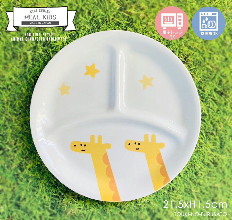 \クーポン配布中!/MEAL(ミール)キッズキリンUK丸仕切皿 直径21.5cm 3つ仕切り皿 仕切りプレート プレート料理 ランチプレート 黄色 きりん 麒麟 電子レンジ 食洗機OK キッズ食器 お子様ランチ かわいい アニマル 動物 美濃焼 国産 安心 日本製 夏休み 陶器のふる里 trys亜